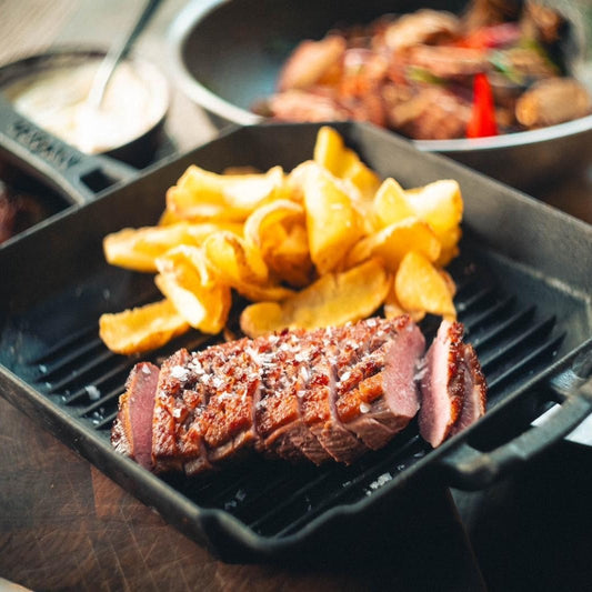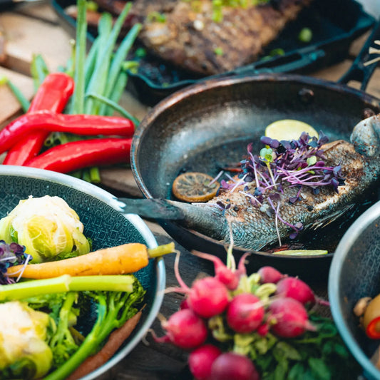 Unsere Edelstahlpfannen sind wahre Alleskönner und besonders pflegeleicht. Sie heizen schnell auf und behalten eine konstante Temperatur – ideal für das scharfe Anbraten von Fleisch, Gemüse und Fisch. Gusseiserne Pfannen bieten hingegen hervorragende Wärmespeicherung und sind perfekt für lange Garzeiten oder Gerichte, die eine gleichmäßige Hitzeverteilung benötigen. Die Kupferpfannen von NYORD verleihen deiner Küche nicht nur einen Hauch von Luxus, sondern überzeugen durch ihre präzise Temperaturkontrolle, die besonders für delikate Speisen wie Saucen und Desserts unentbehrlich ist.