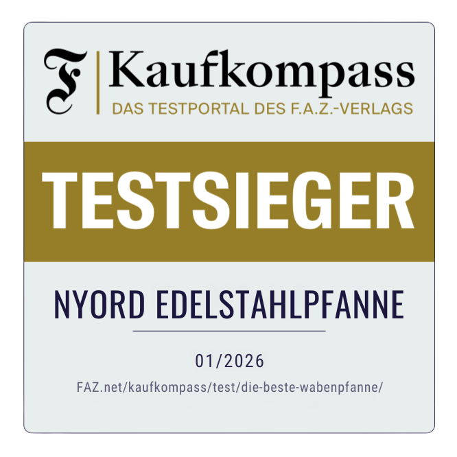 Unsere NYORD Qualität steht für skandinavische Langlebigkeit sowie zeitloses Design. Der hochwertige Glasdeckel ist bei jeder Pfanne inklusive.