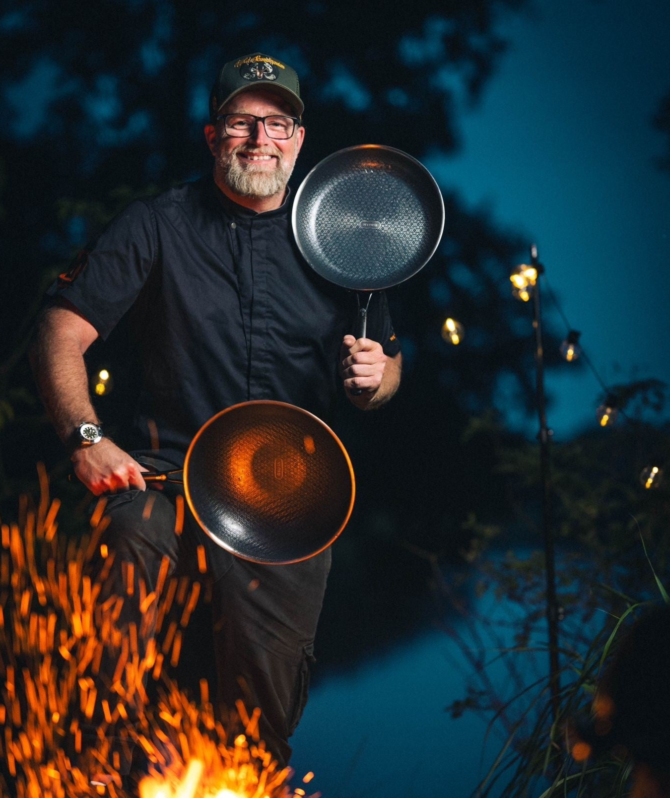 Seine teilweise unkonventionellen Zubereitungsarten, wie z.B. auf offenem Feuer, erfordern besonders robustes Koch-Equipment. Daher ist er begeistert mit NYORD die richtigen Produkte gefunden zu haben.
